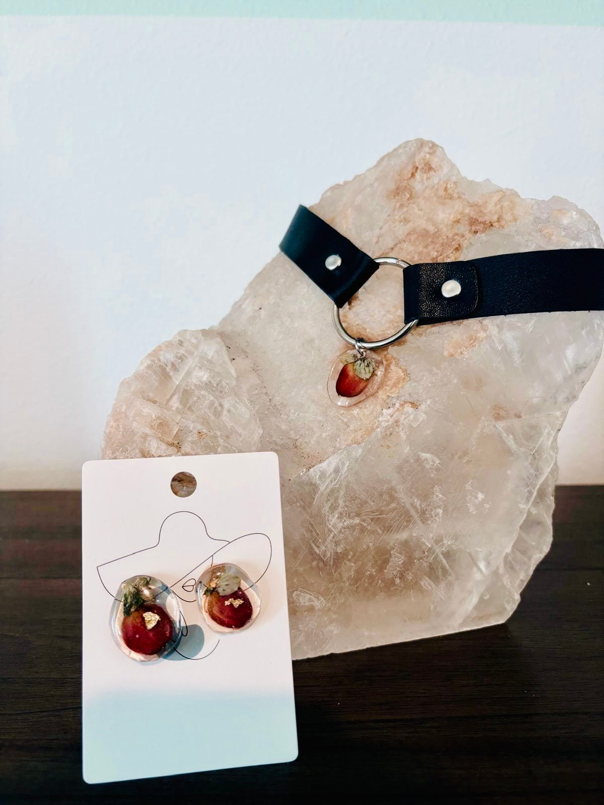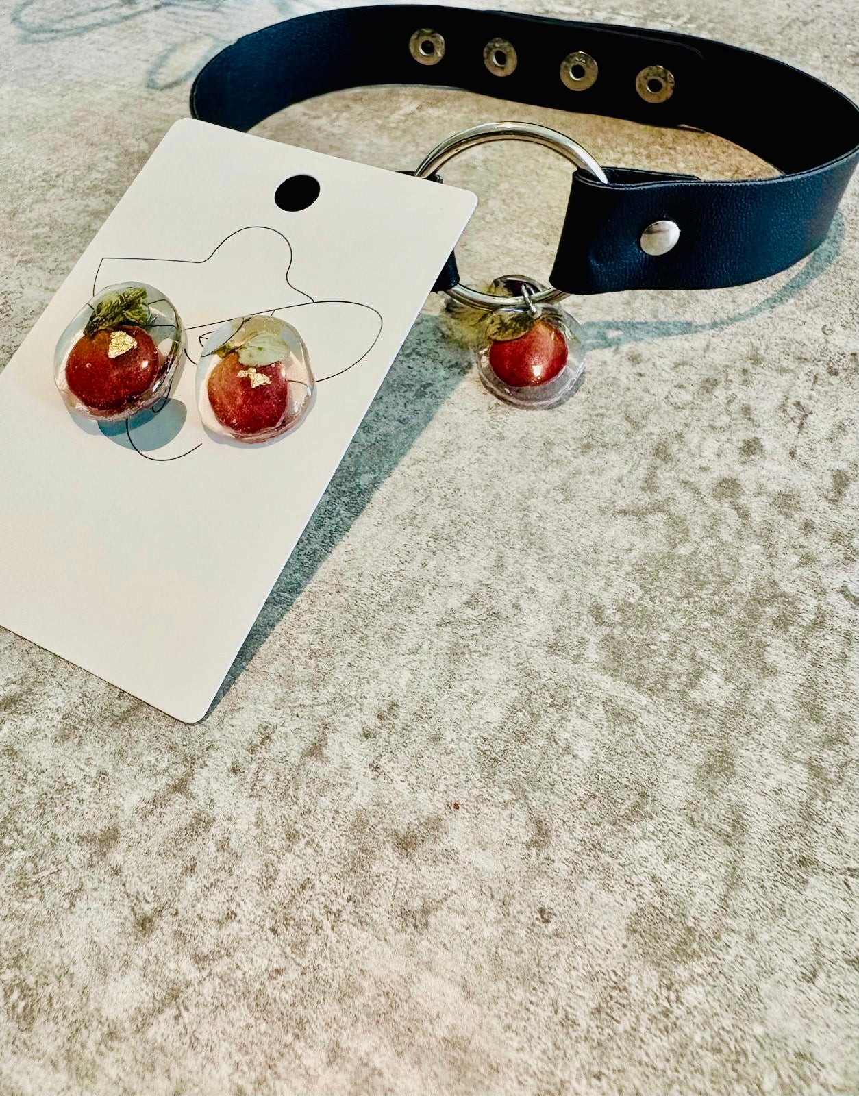 Real Cherry Calf Leather Bracelet & Choker – 2-in-1 Style